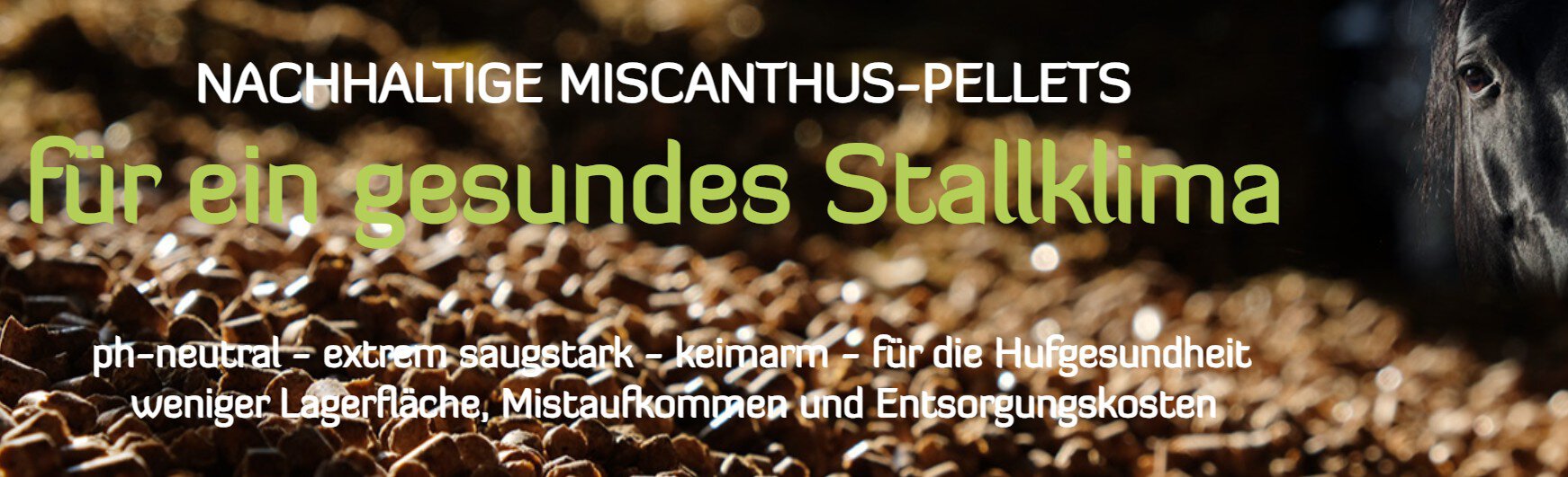 Erfahren Sie auf den folgenden Seiten mehr über unsere Einstreupellets aus Miscanthus für die Pferdebox, den Hühnerstall, den Hasenstall und das Katzenklo.